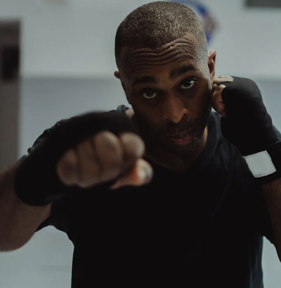 Martial arts-inspired boxing workout combining strikes, kicks, and defensive moves.